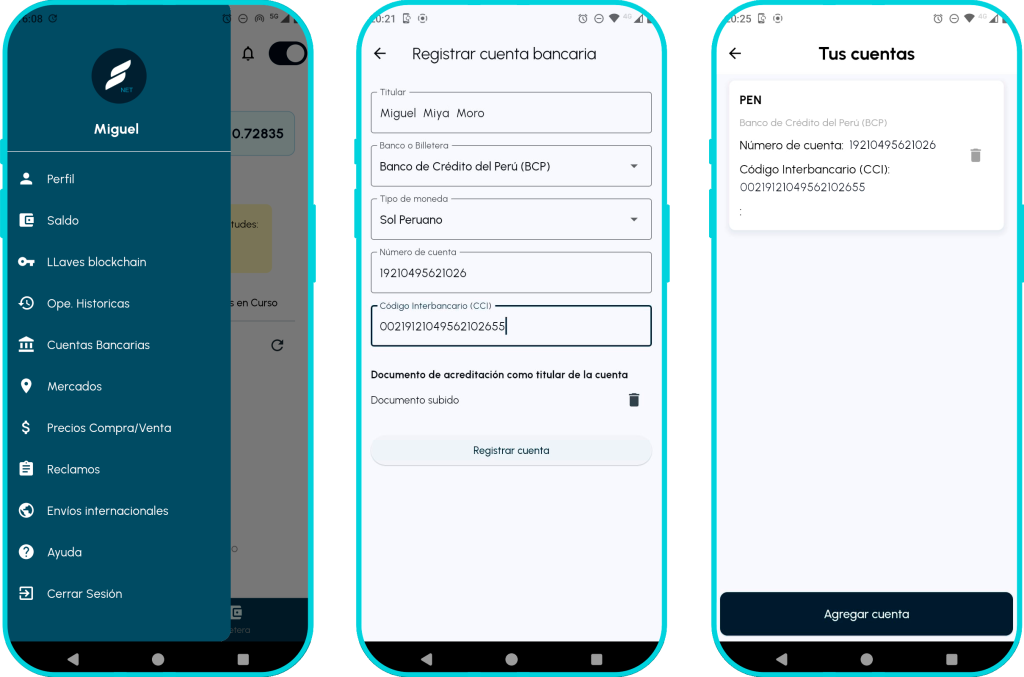 Ve al menú para registrar tu cuenta bancaria en Cuentas & Bancos. Deberás subir una imagen que verifique tu propiedad de la cuenta de banco.