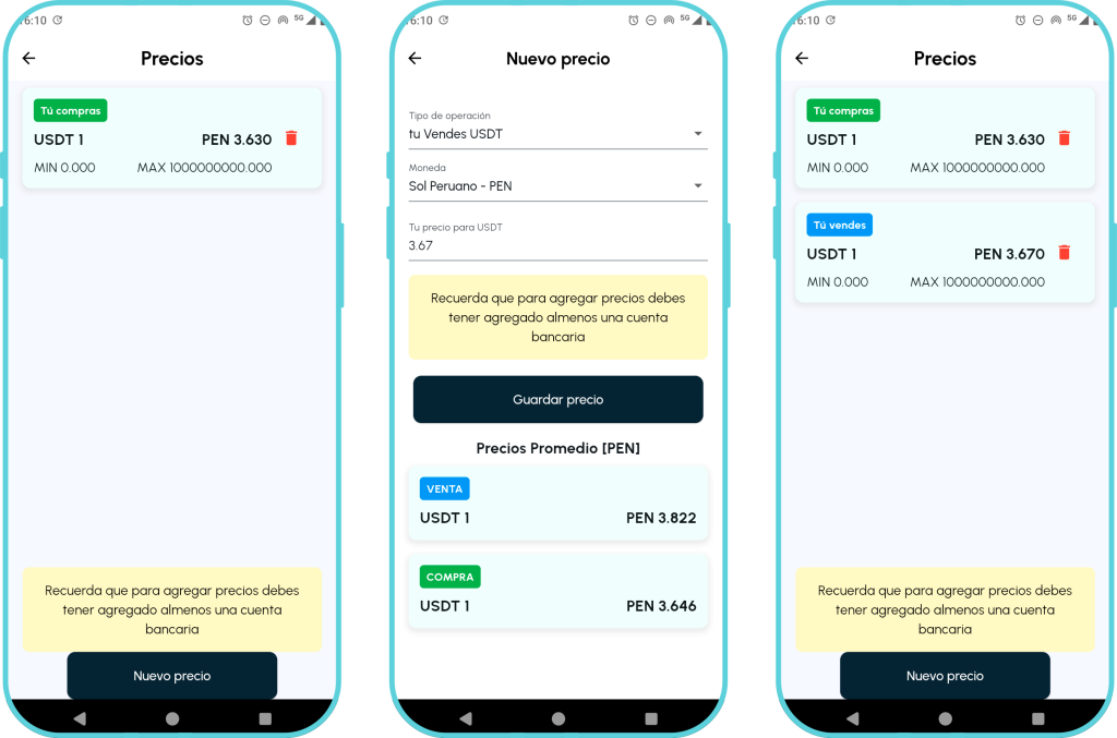 Vuelve al menú para que ingreses a Precios Compra/Venta y configures tus precios. Podrás hacerlo en moneda local o en dólares.