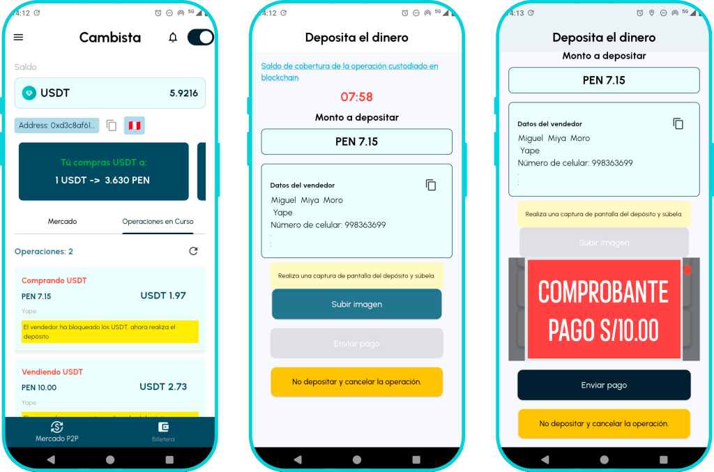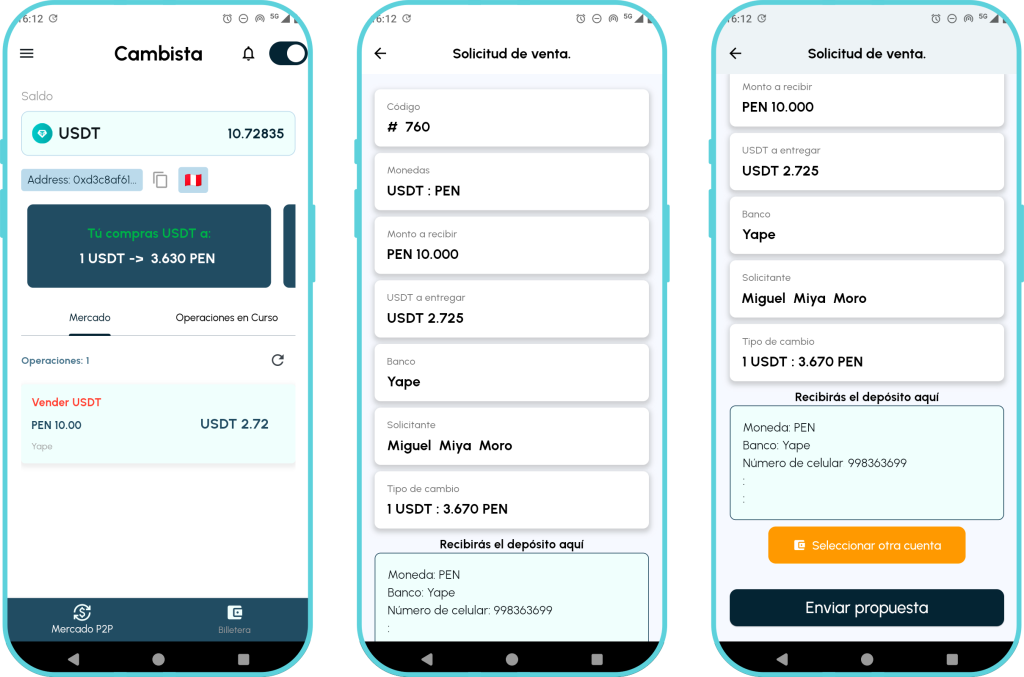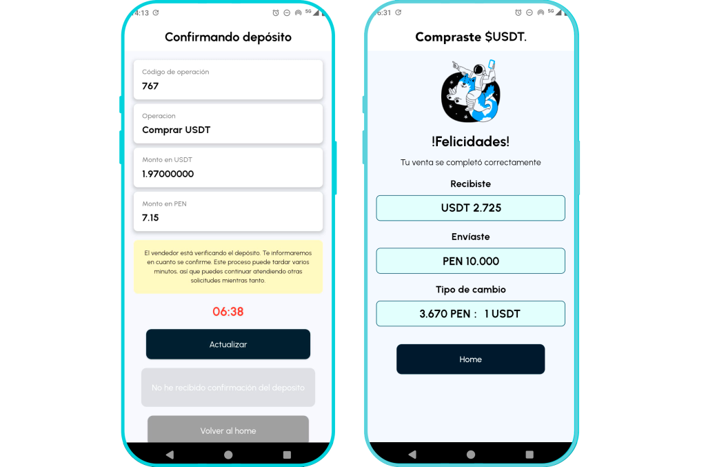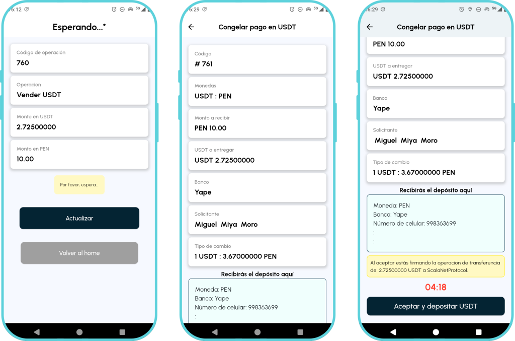 Una vez que el usuario acepte tu propuesta, deberás congelar el pago clickeando en Aceptar y Depositar USDT.
