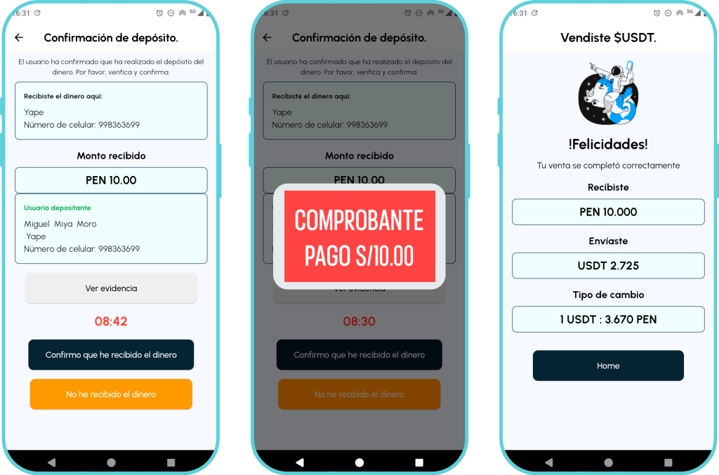 Cuando el cliente haga la transferencia, podrás verificar el pago clickeando en Ver Evidencia. Si todo está conforme, click en Confirmo que he recibido el dinero y ¡Listo!